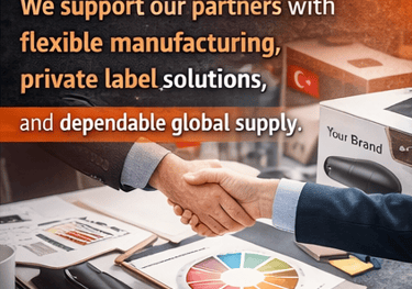 Standart ürün satmanın ötesinde, müşterilerimize private label, özel tasarım, ambalaj ve teknik özelleştirme çözümleri sunuyoruz.