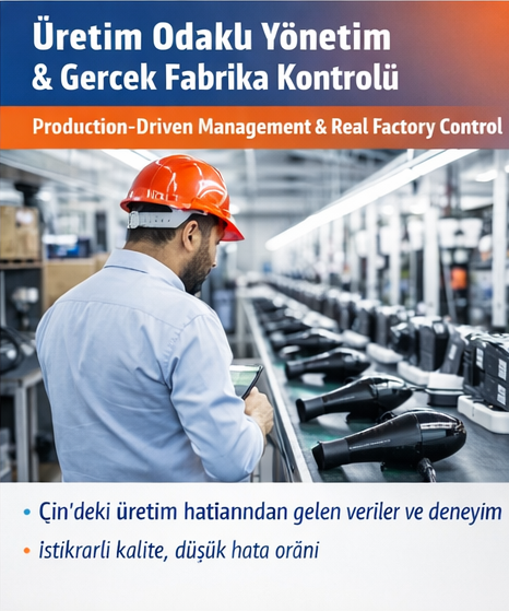Şirketimizin yönetimi yalnızca ofisten değil; bizzat Çin’deki üretim hattından gelen veriler, tecrübeler ve saha bilgisiyle operasyon yürütmektedir.